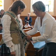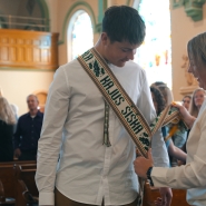 “Eisim jau. Girdi, klases uždaro? Paskutinį kartą paklausyk. Toks labai pažįstamas ir geras tų senųjų raktų skambesys. Eisim jau. Žali klevai parimę pakuždės prie vartų paslapčia: Čia pirma svajonė jūsų gimė ir keliai prasideda nuo čia. Eisim jau. Kaip niekad šypsos saulė ir kaip niekad mokykla tyli, priešaky toks nuostabus pasaulis, miestai ir žvaigždynai priešaky... Eisim jau. Girdi, klases uždaro? Nieko, nieko, kad keliai ilgi. Tu man nesakyki “Viso gero!”. “Iki pasimatymo!” sakyk...”