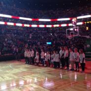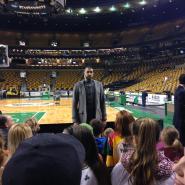 Mokykla išplatino dukart daugiau varžybų bilietų nei pernai, Mindaugui susitarus, įvyko vaikų (ir tėvelių J ) susitikimai per pertrauką ir po varžybų, na, o kas gi gali atstoti ir Amerikos himno giedojimą prieš varžybas su „Celtics“ komandos marškinėliais ir VIP kortelėmis ant kaklų! Vakarą vainikavo dešimties minučių mėtymas į krepšį garsiojoje sporto arenoje ir, žinoma, susitikimas su Jonu Valančiūnu! Jis, nors ir skubėdamas į lėktuvą, nešykštėjo šypsenų, šmaikščių atsakynų ir autografų. Ačiū, Jonai, ar patiko mūsų spontaniškas „Ant kalno mūrai“? Bėda tik, kad negalėjome lengvai nuspręsti už ką sirgti, už Bostono “Celtics“ ar Toronto „Raptors“, nors visi tikrai palaikėme Joną Valančiūną!